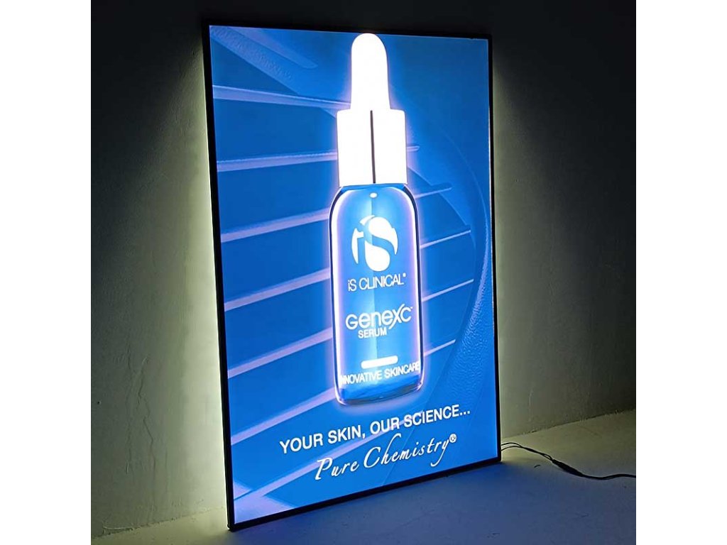 - Lightbox je zavěšen na tenká lanka, což umožňuje prezentaci reklamy přímo ve výloze.